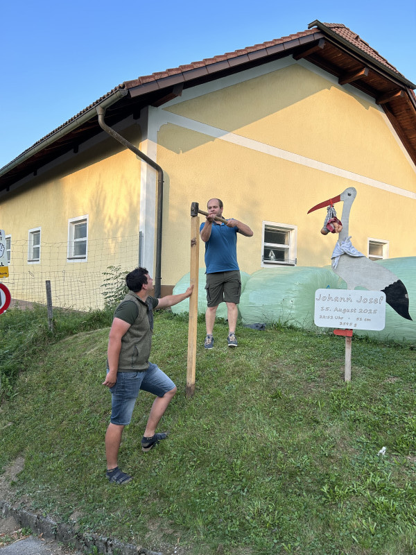 Natürlich ließ es sich eine Abordnung unserer Feuerwehr nicht nehmen, dem frischgebackenen Papa zu gratulieren. Und wie es Tradition ist, wurde dabei auch gleich unser Feuerwehrstorch bei den stolzen Eltern zuhause aufgestellt.