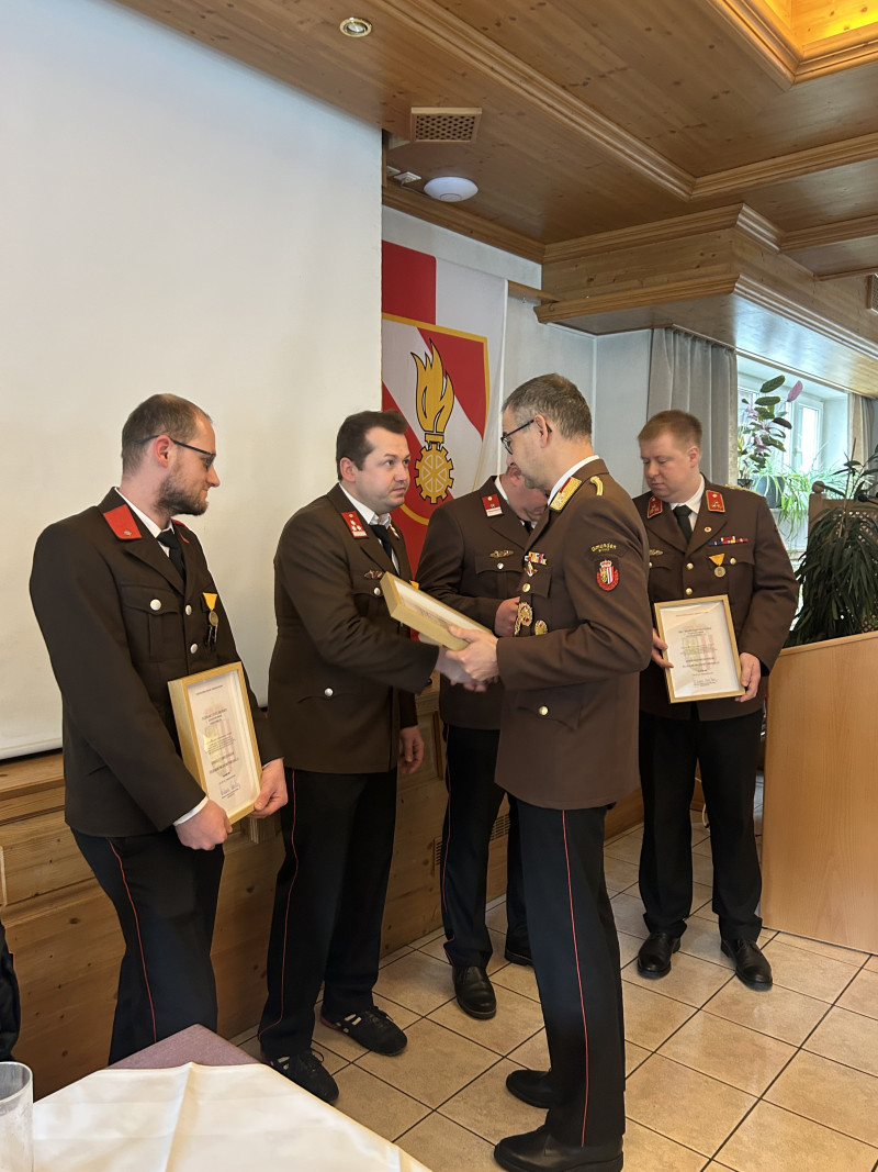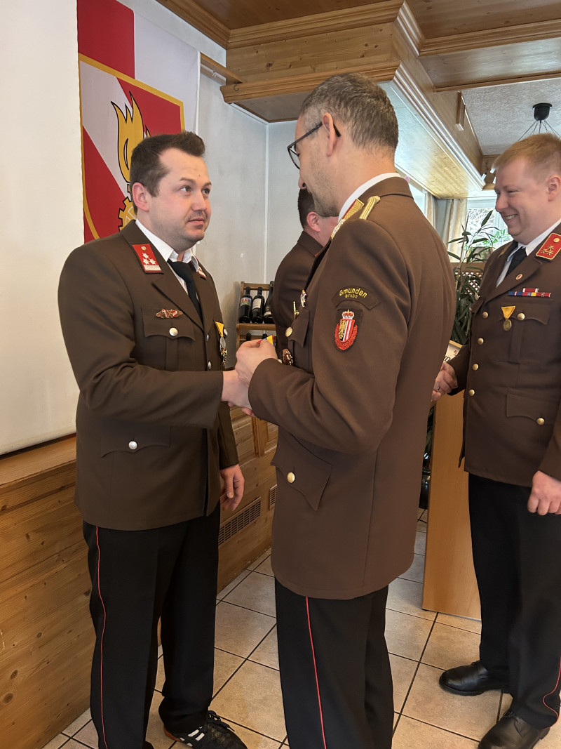 Für besondere Verdienste im Feuerwehrwesen und ihre große Bereitschaft zur freiwilligen Arbeit wurden Thomas Pöll und Mario Thallinger mit der Bezirksmedaille in Bronze ausgezeichnet. Johann Kronberger war unter anderem 27 Jahre Gerätewart der FF Kirchham, engagiert sich mit großem Einsatz für alle und legt großen Wert auf Kameradschaft und ein gutes Miteinander. All dies beschreibt nur einen kleinen Teil seiner Hilfsbereitschaft, und so wurde Johann Kronberger mit der Florianmedaille des Oö. LFV in Bronze ausgezeichnet.