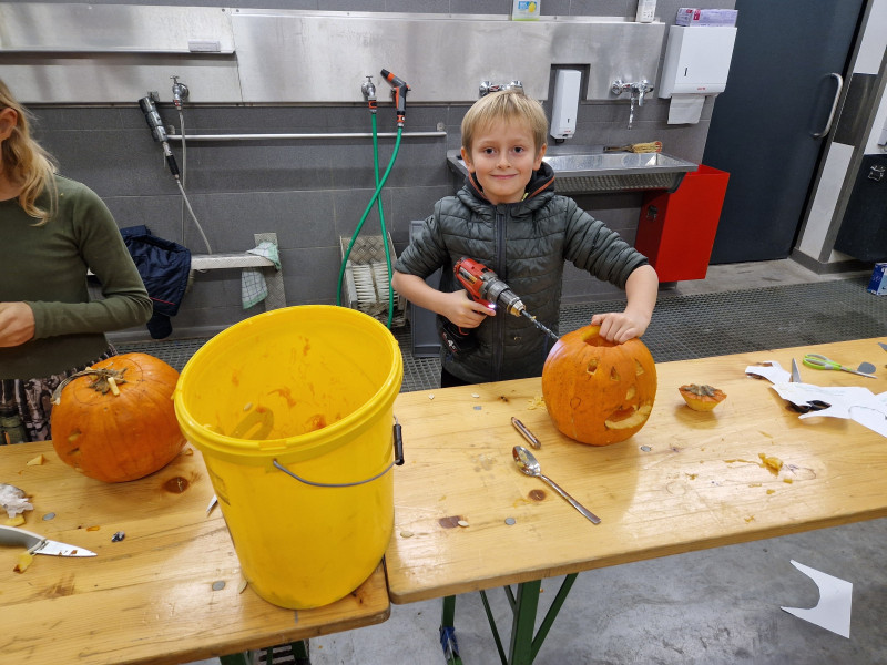 Beim Kürbisschnitzen hatten unsere Jugendlichen riesigen Spaß und zeigten jede Menge Kreativität.