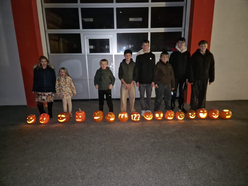 Am Ende leuchteten die Kürbisse stolz vor dem Feuerwehrhaus und sorgten für echte Halloween-Stimmung!